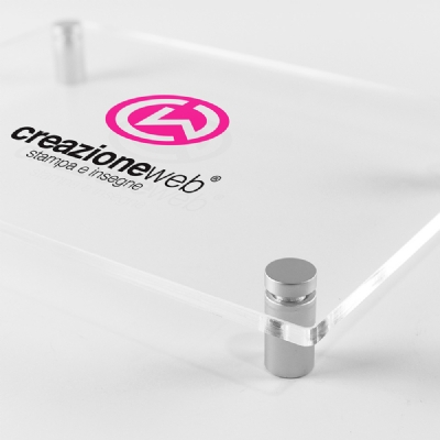 L'installazione delle targhe in plexiglass è semplice e veloce grazie all'uso di distanziali che conferiscono un effetto sospeso e professionale: